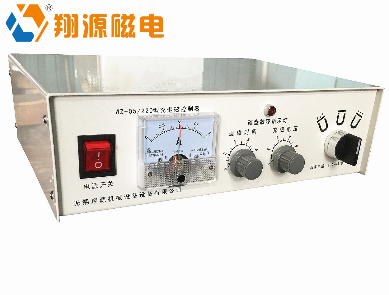 產品性能:電磁吸盤控制器 ( 充退磁控制器 , 整流器 )輸入電壓為交流220V或380V,直流輸出電壓0-110V可 調,電流容量2-25A,退磁時間2-30秒可調,工件剩磁在千分之一以下,并且有對機床起保護作用的連鎖裝置。