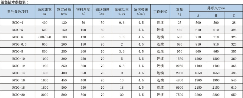 產品介紹:RCDG系列干式自冷電磁除鐵器內部線圈采用絕緣性等級高,耐熱性能好的紗包線繞制而成,適用于輸送帶上任何物料的除鐵,對各種型號的破碎機、磨機起著可靠的保護作用。磁路采用計算機模擬設計,透磁深度大;結構簡單合理,維護方便;溫升低,磁場強度波動幅度小。