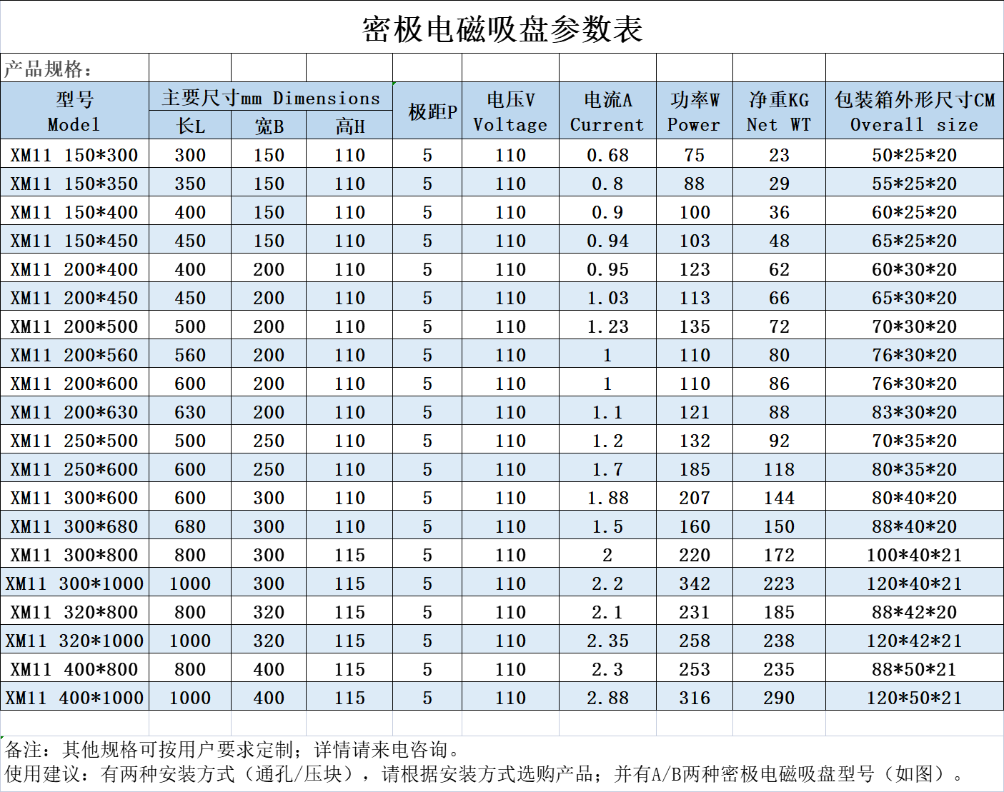 使用建議:當(dāng)用戶選購產(chǎn)品使用時,可以選購 橫向密極電磁吸盤 和 縱向密極電磁吸盤 。