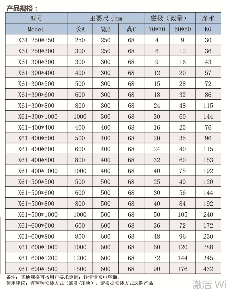 電永磁吸盤X61-600*10